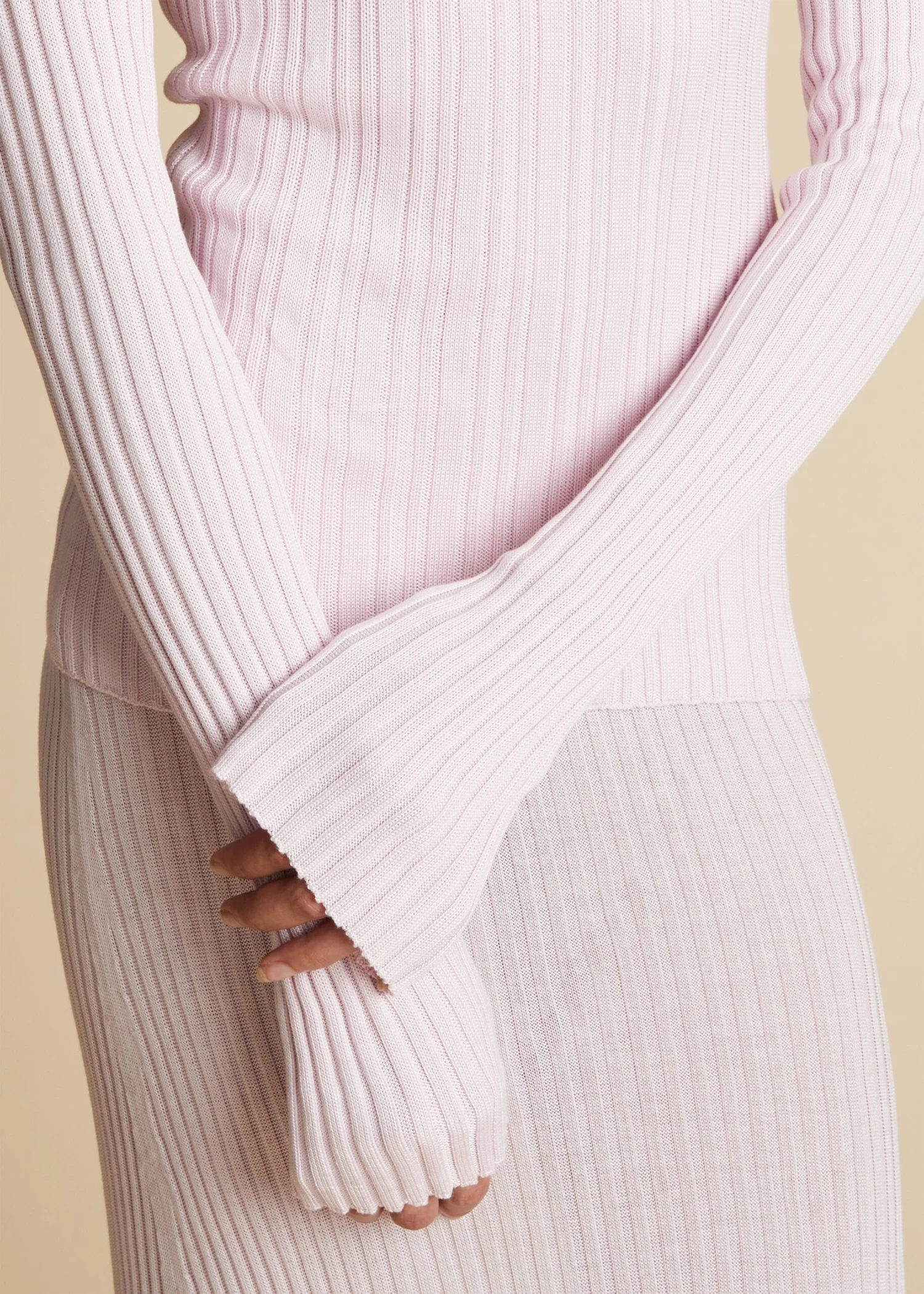 Part of the summer capsule. Designed for a close fit with extended sleeves, this ribbed crewneck is knit of fine, lightweight Italian silk selected for its softness, breathability, and fluid drape.