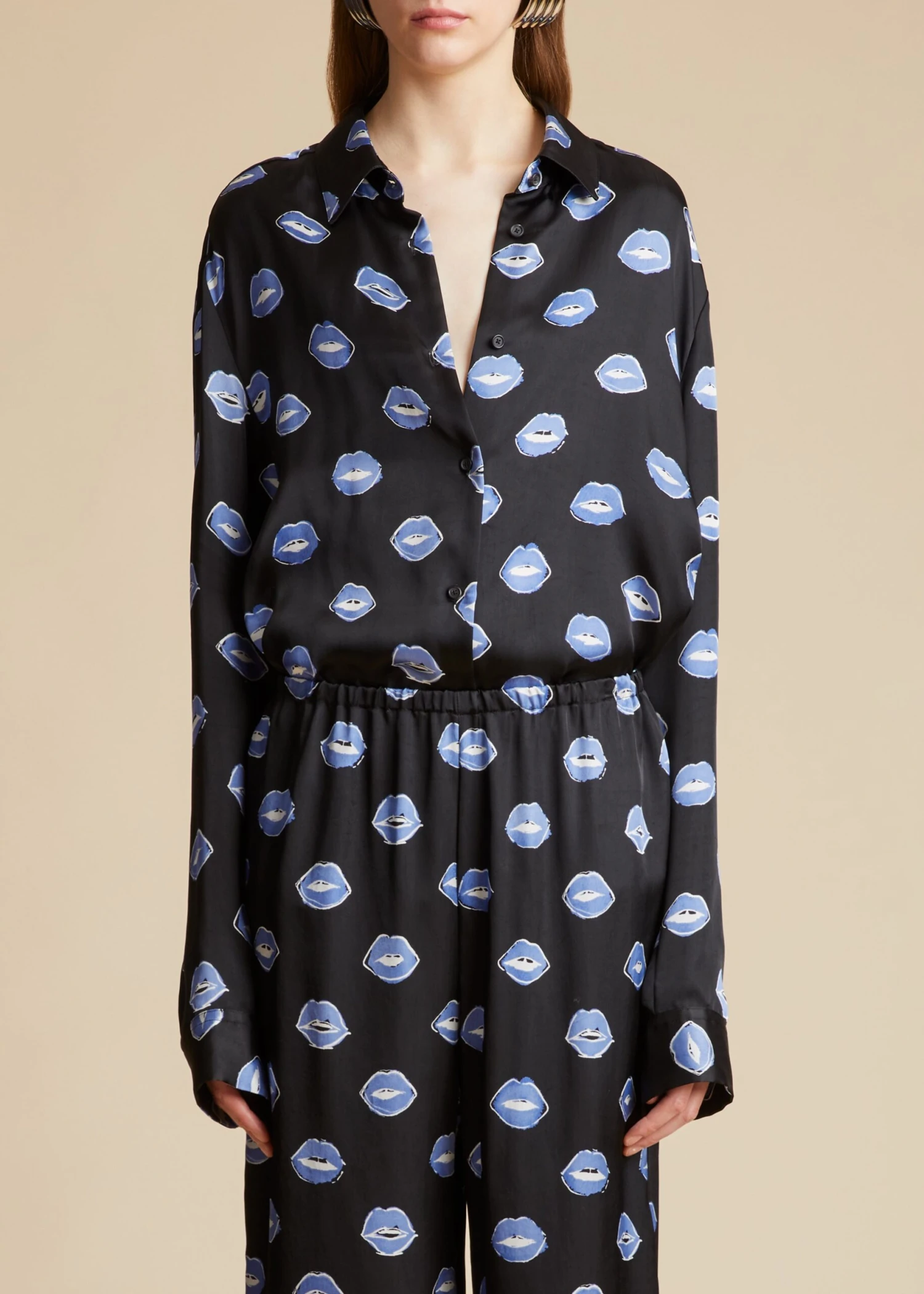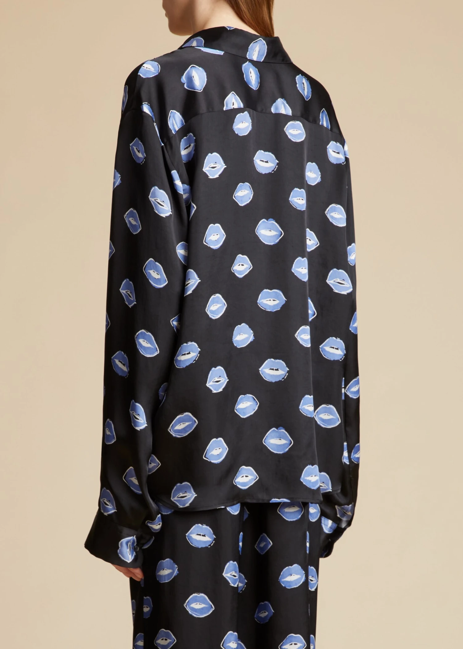 Adding a lively charm to the Pre-Fall collection is the custom print of hand-painted lips that makes this button-up unmistakably KHAITE. The menswear-inspired silhouette gains a full-bodied bounce from washed cupro twill. Finishing touches include a back yoke and single-button cuffs.