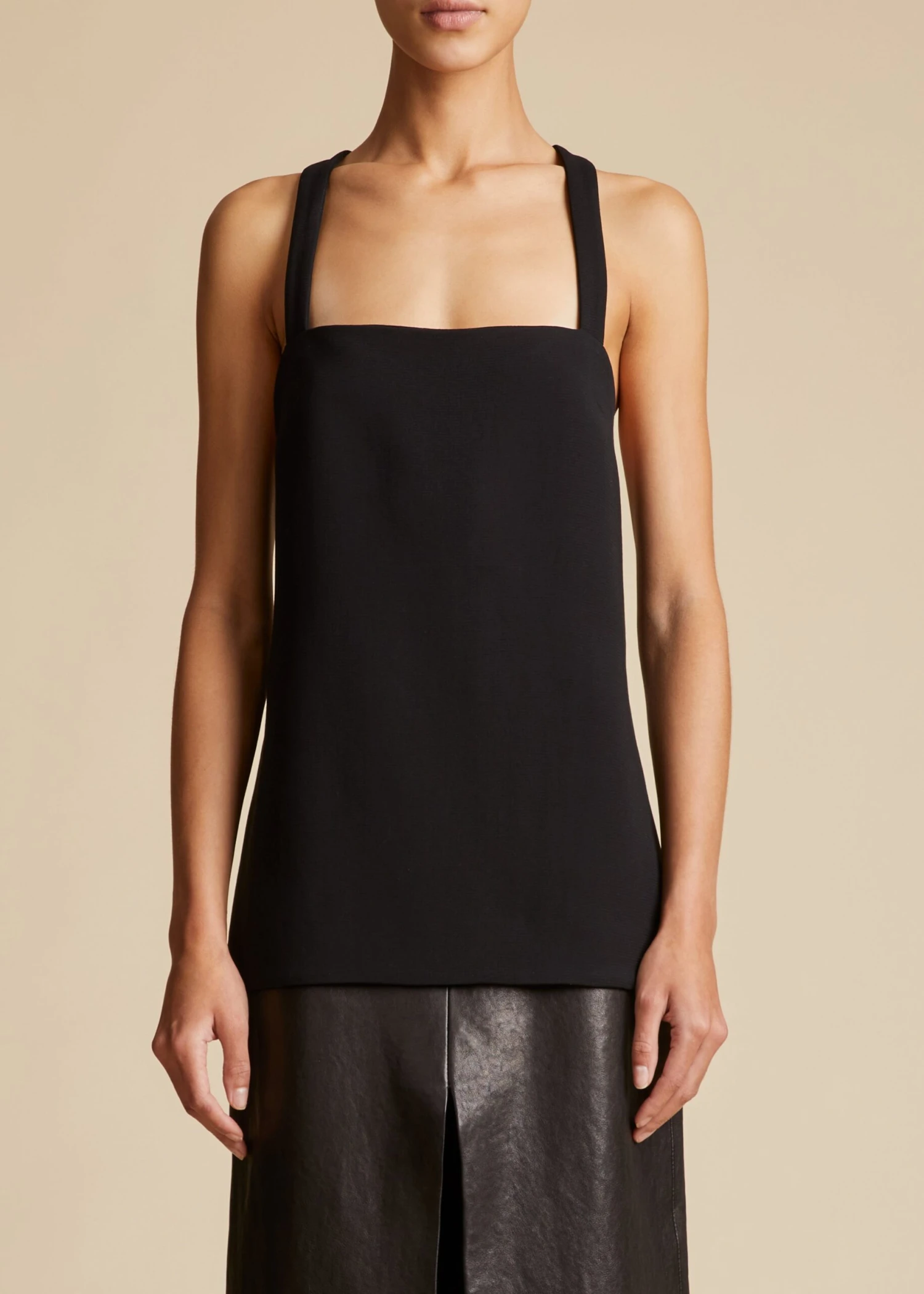 The Pre-Fall collection’s intensified silhouettes and decisive yet playful details come together in this apron-inspired crepe top. The straps cross at the open, low back. A concealed side zipper ensures a smooth fit.