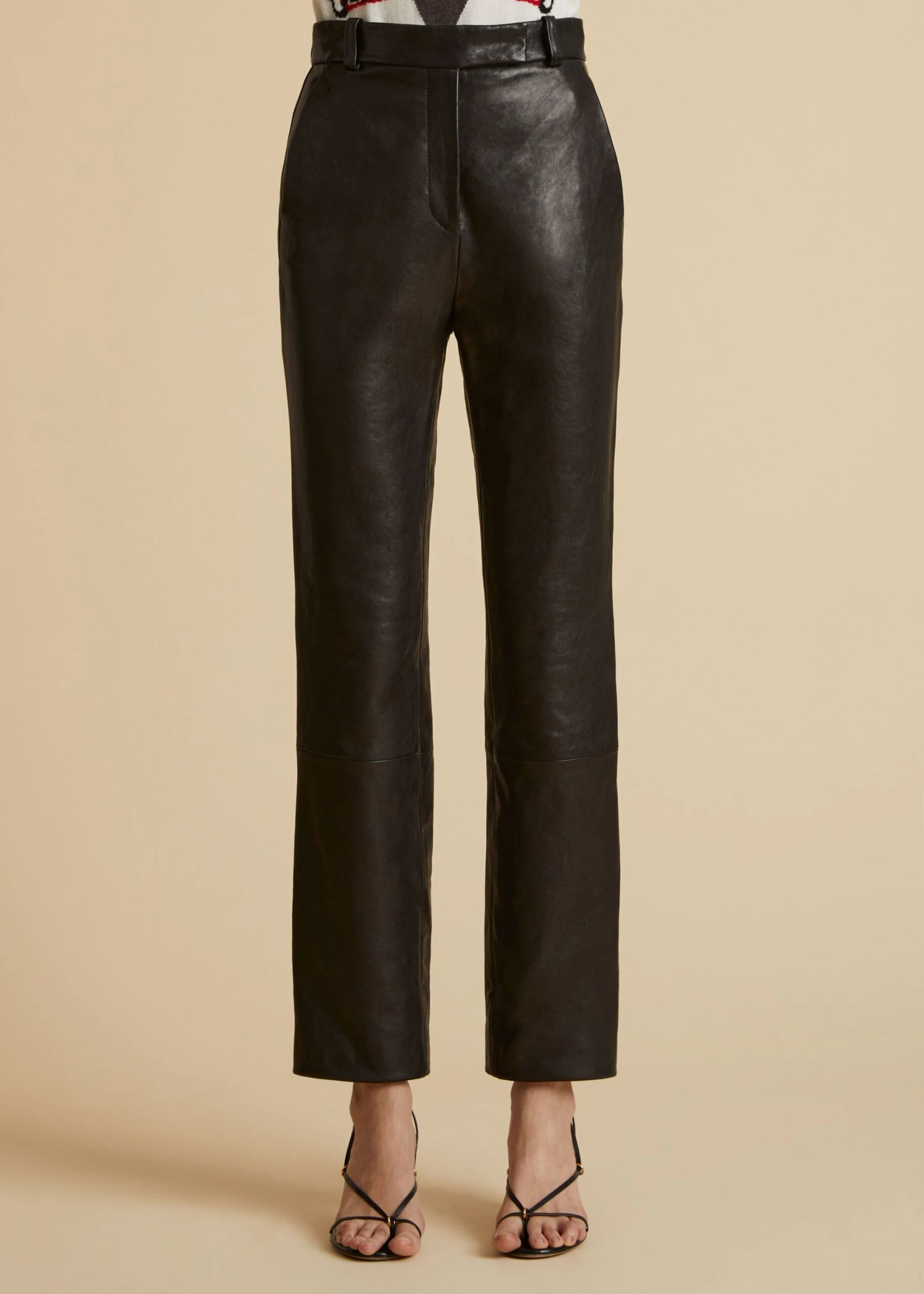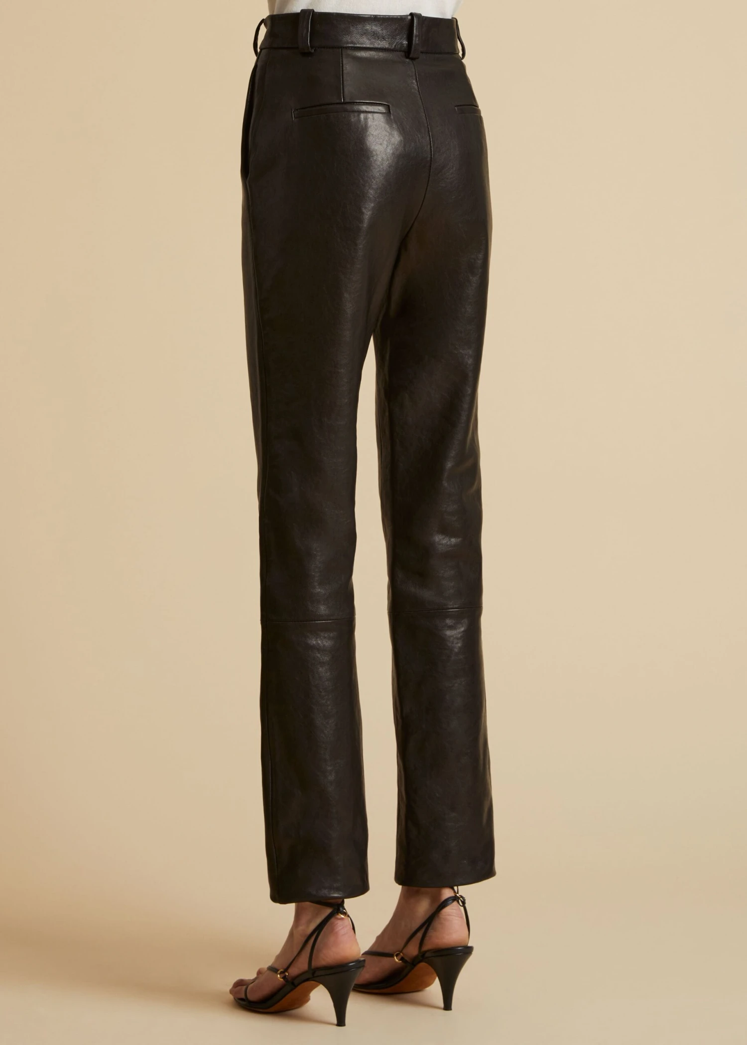 A streamlined, high-rise trouser debuting in lambskin for Fall/Winter 2023. With inset side pockets, back welt pockets, and twill lining.