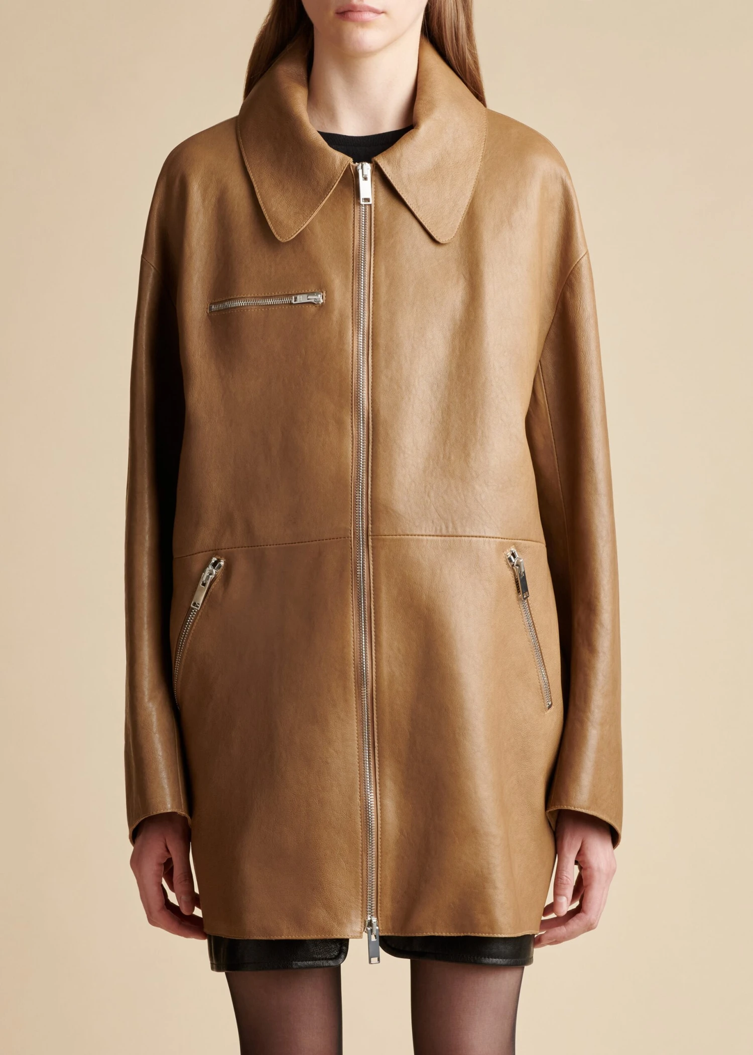 Exclusive to Ôªøkhaite.comÔªø.â The Fall/Winter collection savors the immediacy of the sensual through pieces like thisâ enveloping jacket in Italian lambskin selected for its substantial, structured quality. Lined in silky cupro, the sculptural silhouette is framed by a boldly scaled collar. Dropped shoulder seams complement refined pagoda sleeves.â Finishing touches include a trio of zippered pockets and chrome hardware.