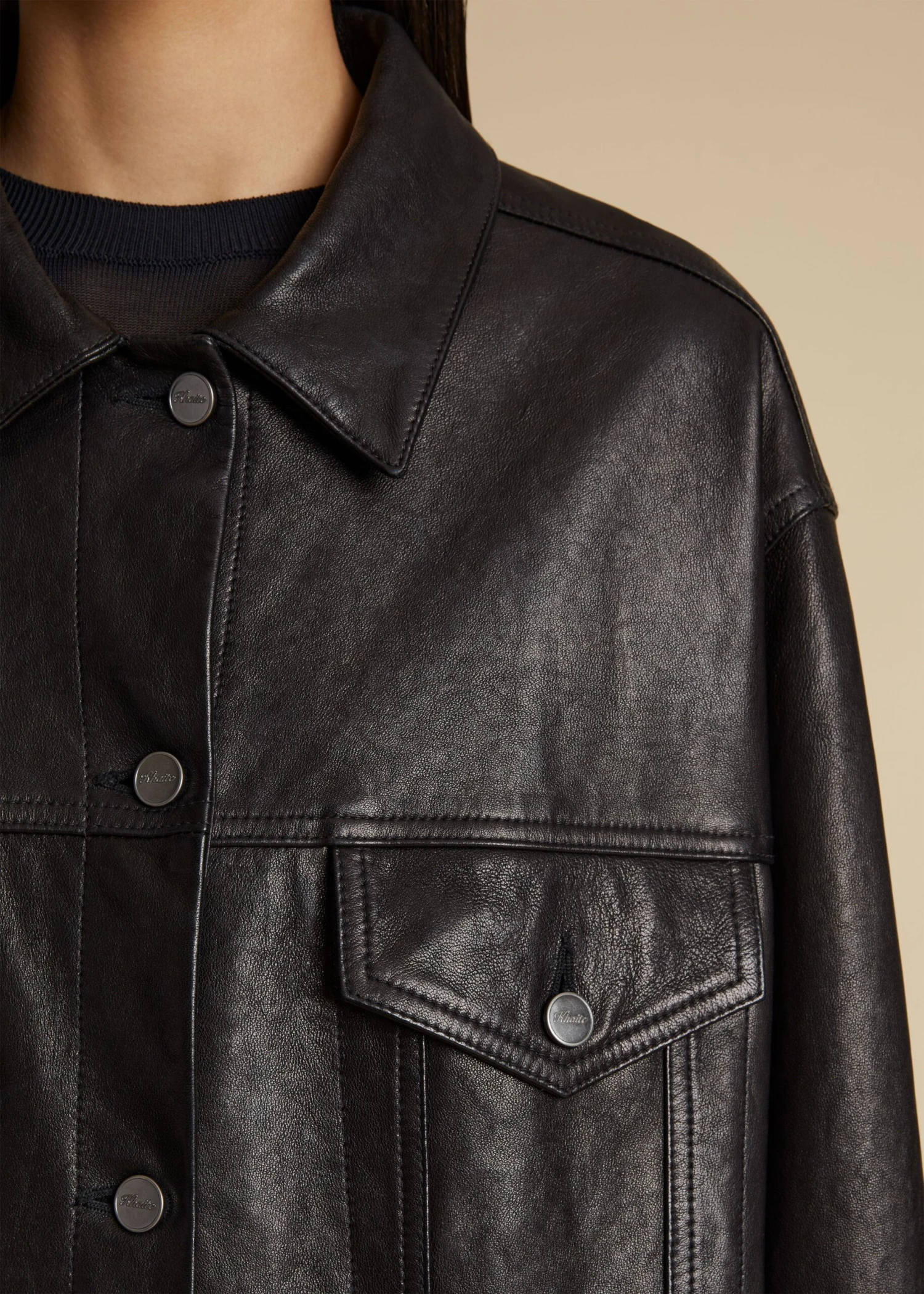 Part of the S23 summer capsule. For Spring/Summer 2023, a dynamic range of proportions spans the impulses to conceal and to reveal along with new frontiers of strength, as seen in this reimagined trucker jacket. The oversized silhouette is crafted of structured and substantial Italian lambskin, with button-flap patch pockets, silver-toned buttons, tonal topstitching, and a lining of silky cupro.
