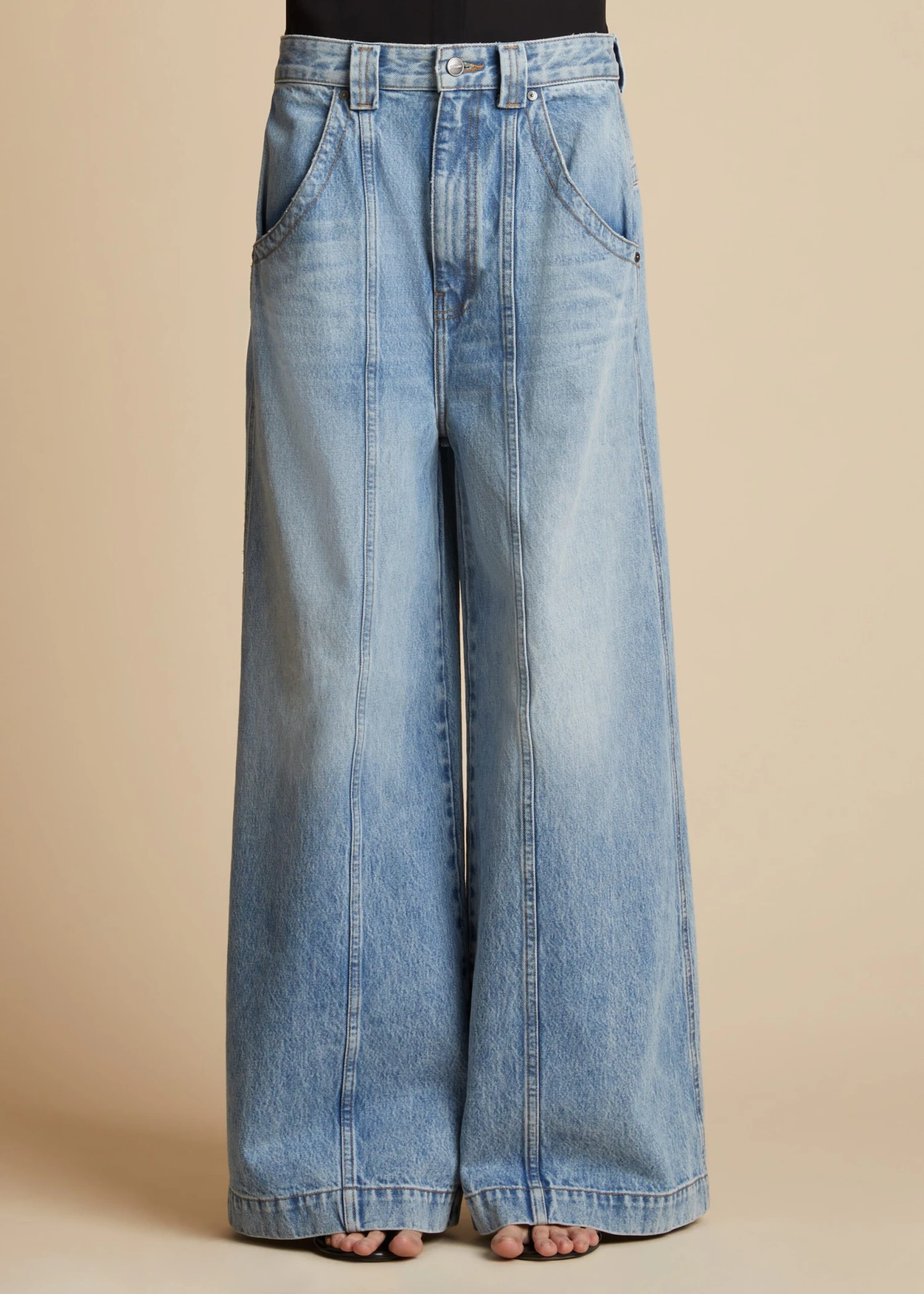 Designed for an oversized fit, this wide-leg silhouette accentuates its ease with an elongated low rise and generously scaled back patch pockets. The relaxed proportions are balanced by refined seaming. Each hand-finished pair has a signature embossed button of antiqued nickel.