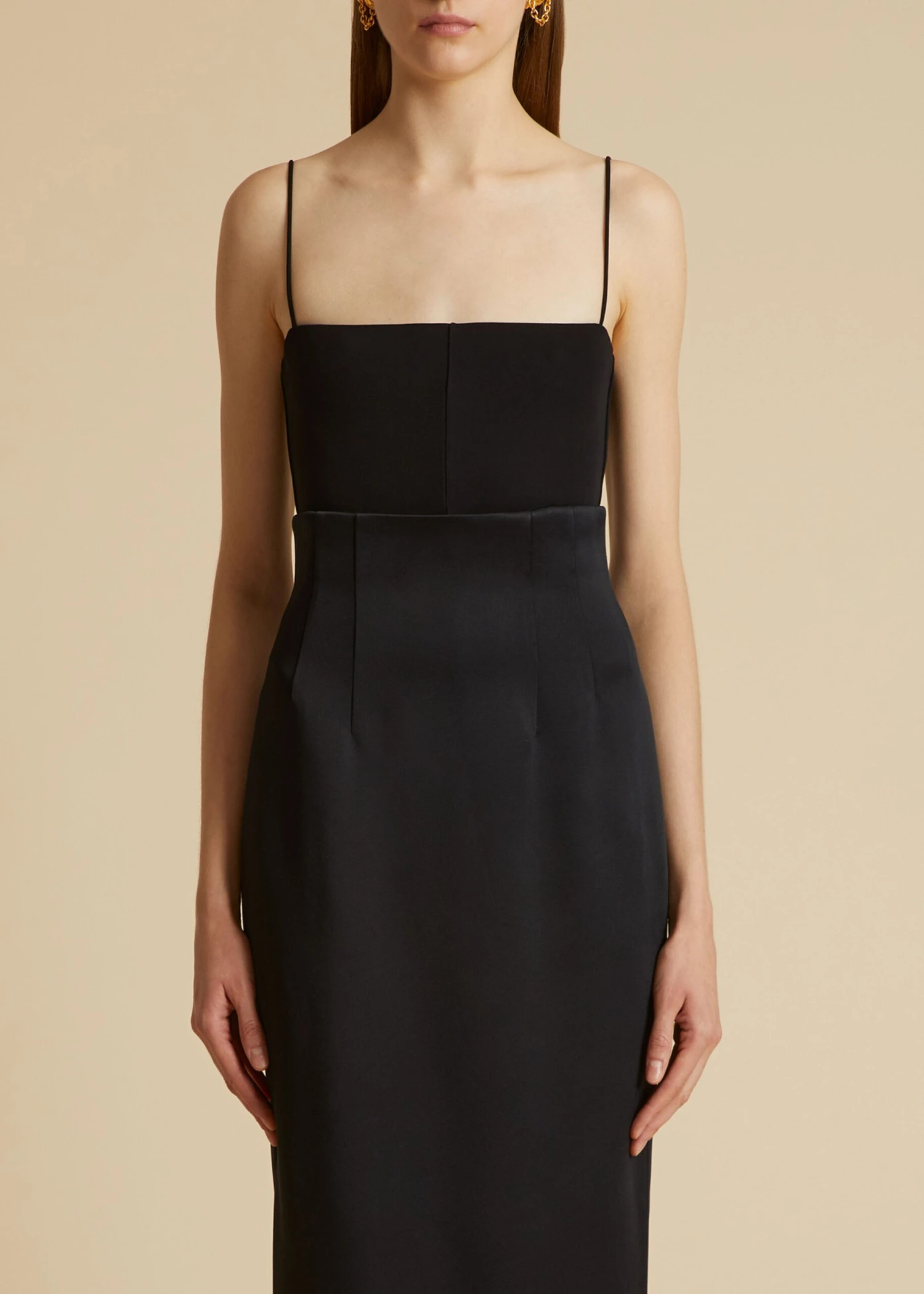 A versatile wardrobe foundation, this clean-lined, open-backed bodysuit hugs the body in smooth viscose selected for its stretch and structure. The flattering fit is accentuated by a central seam at front, delicate lingerie straps, and snap closures at the base.