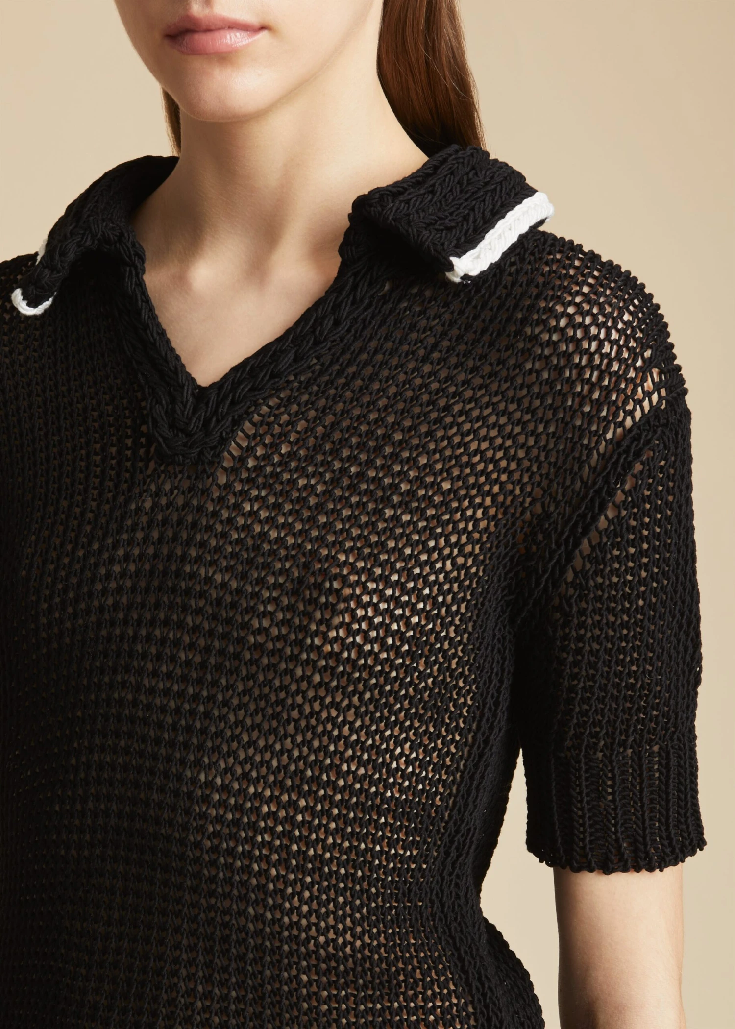 Part of the summer capsule. The knitwear of the Spring/Summer 2023 collection engages with concepts of animation and suspension to introduce mesmerizing surfaces developed in dialogue with the body. With a collar, neckline, and hem accented by the handcrafted detail of crochet chain stitches, this pullover is knit of mercerized cotton.