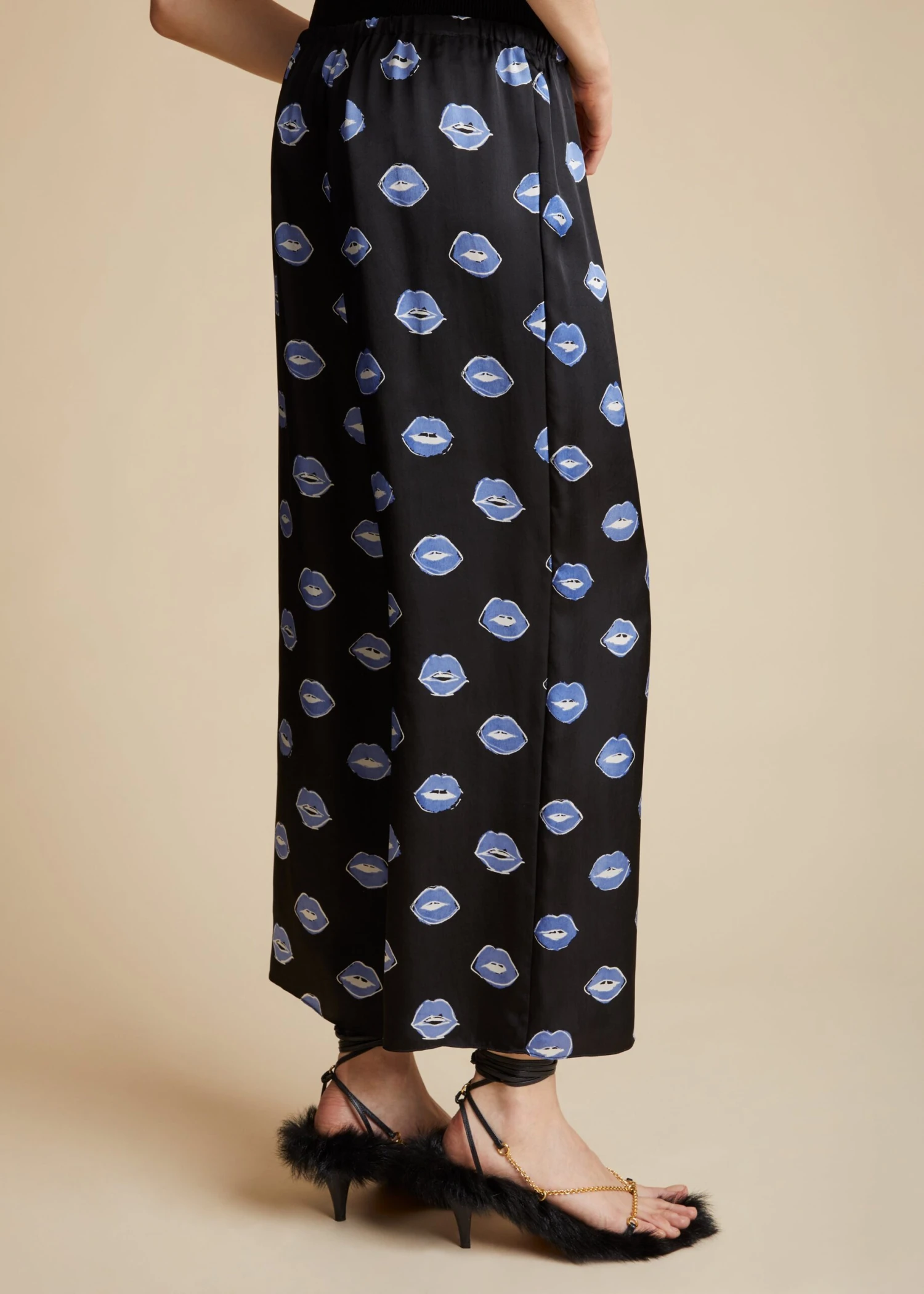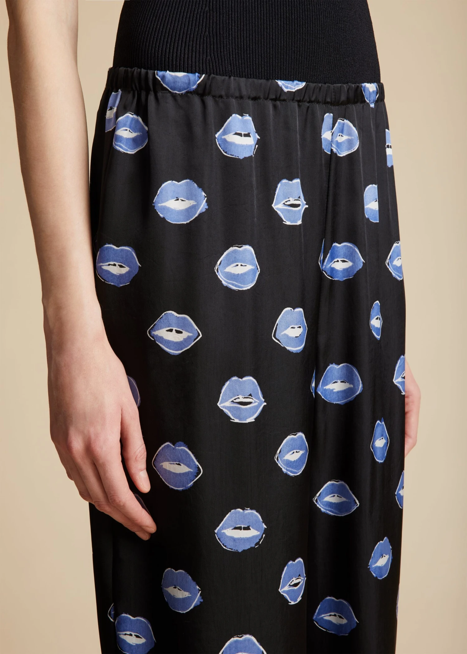In silky cupro twill that has been washed to impart a full-bodied bounce, this fluid pant features the Pre-Fall collection’s custom print of hand-painted lips. The relaxed silhouette offers the ease of an elasticated waist, so it slips on for a smooth fit.