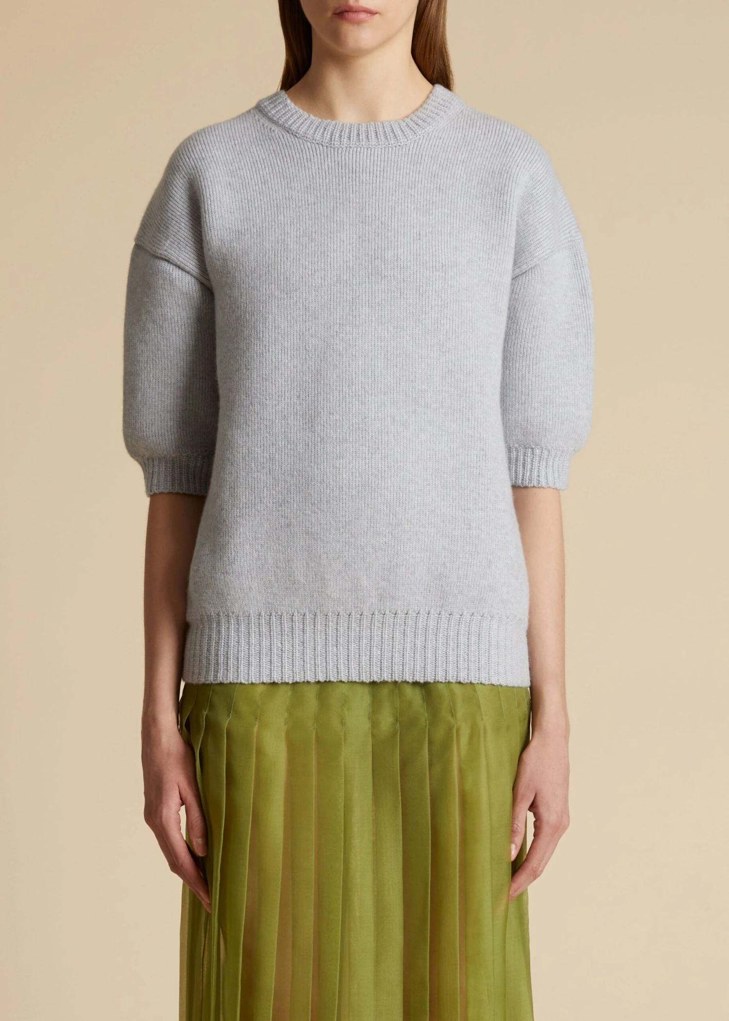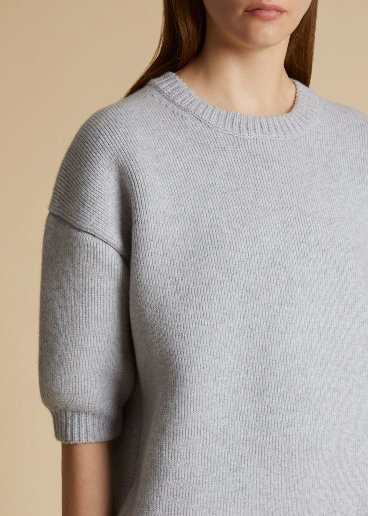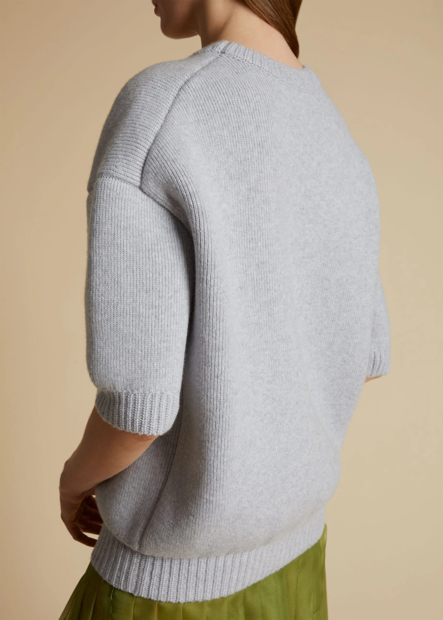 Through elongated and intensified silhouettes like this sculpted knit pullover in luscious, medium-weight cashmere, the Pre-Fall collection proposes a wardrobe of intuition. It is relaxed by dropped shoulder seams and refined by ribbing at the crewneck, hem, and cuffs.