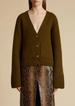 Accented by fisherman’s rib-stitched trim, patch pockets, and tortoiseshell buttons, this deep v-neck cardigan envelops the body in mid-weight cashmere selected for its exceptional softness and robust texture. The cropped silhouette is balanced by relaxed, extended sleeves.