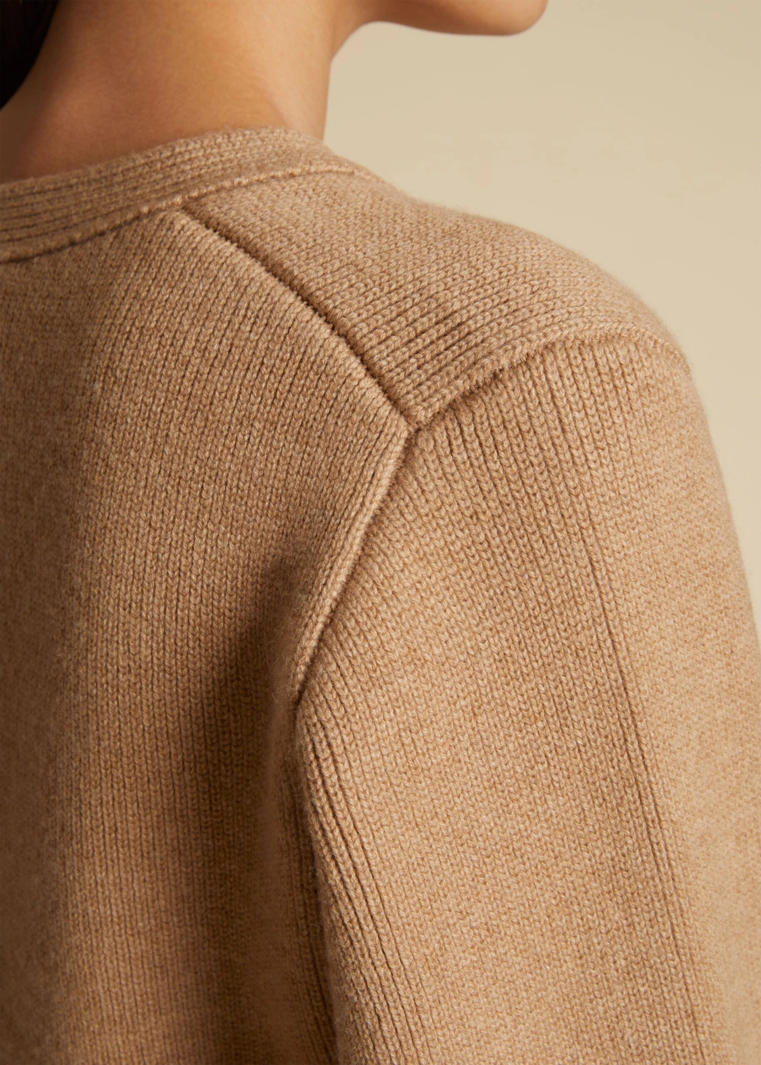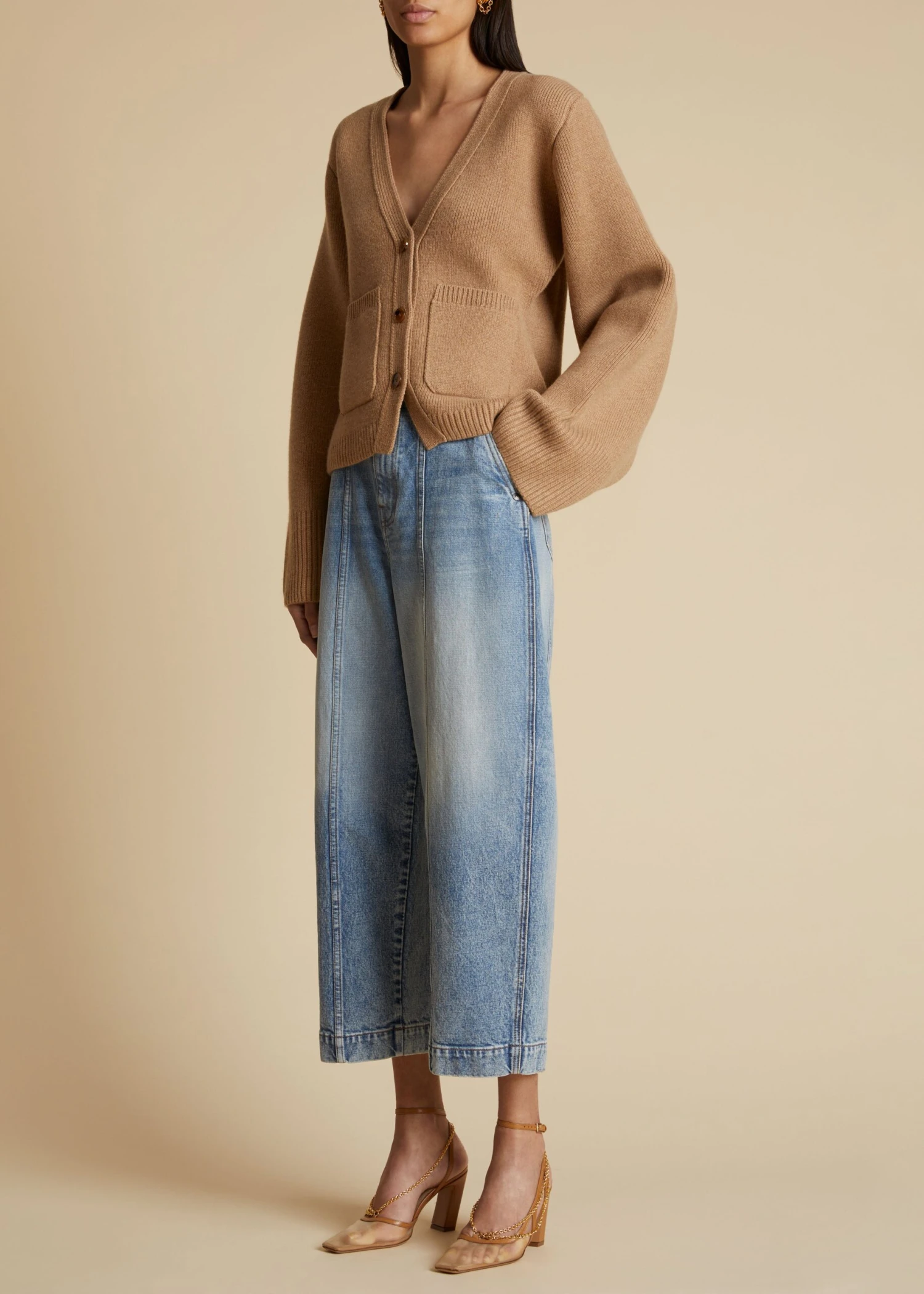 Exclusive to khaite.com. Accented by fisherman’s rib-stitched trim, patch pockets, and tortoiseshell buttons, this deep v-neck cardigan envelops the body in mid-weight cashmere selected for its exceptional softness and robust texture. The cropped silhouette is balanced by relaxed, extended sleeves.